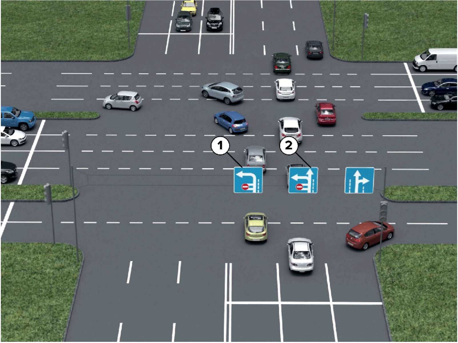 знаками 5.15.2 "Направление движения по полосам".