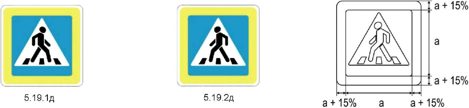 3  | Установка дополнительных рамок повышенного внимания допускается только вокруг знаков 5.19.1д, 5.19.2д на нерегулируемых пешеходных переходах и на переходах, расположенных в местах без искусственного освещения либо ограниченной видимости. Рекомендуется устанавливать рамки, ширина которых пропорциональна размеру знака и составляет не более 15% от ширины и высоты применяемого типоразмера. |