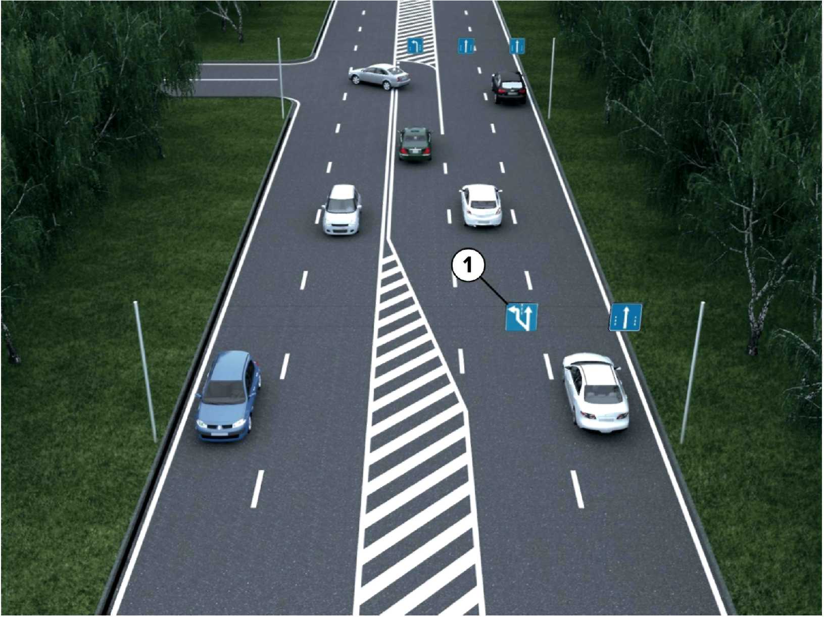 1  | 5.15.3д Начало полосы Информируют водителей о появлении дополнительной полосы (полос) движения. Возможно отображение дополнительных режимов движения и предназначений полосы для маневра. Знаки устанавливают у начала отгона начинающейся полосы либо у начала переходной линии разметки. |