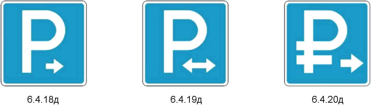 3  | 6.4.20д Направление размещения парковки Допускается к установке перпендикулярно к основным дорожным знакам, в том числе на стенах зданий и ограждениях. На знаках применяются дополнительные стрелы, которые отмечают границы зон разрешенной парковки. |