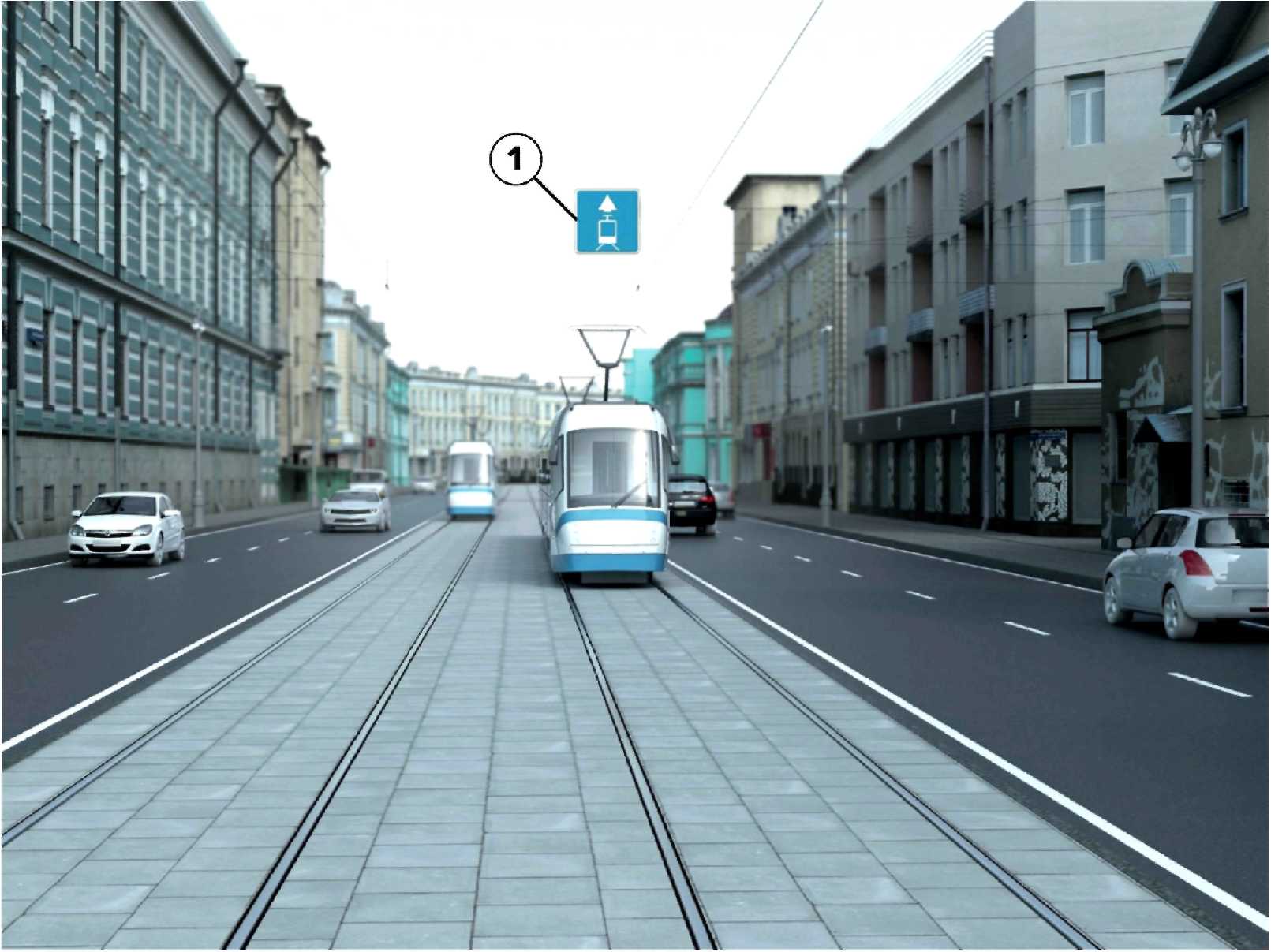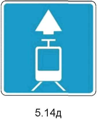 1  | 5.14д Выделенная трамвайная полоса Для повышения эффективности работы трамваев допускается установка знаков 5.14д над трамвайными путями с одновременным обособлением путей разметкой 1.1 или 1.2. |