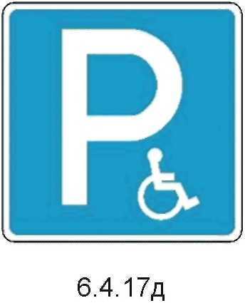 1  | 6.4.17д Парковка для инвалидов Действие знака распространяется на мотоколяски и автомобили, на которых установлен знак "Инвалид". |