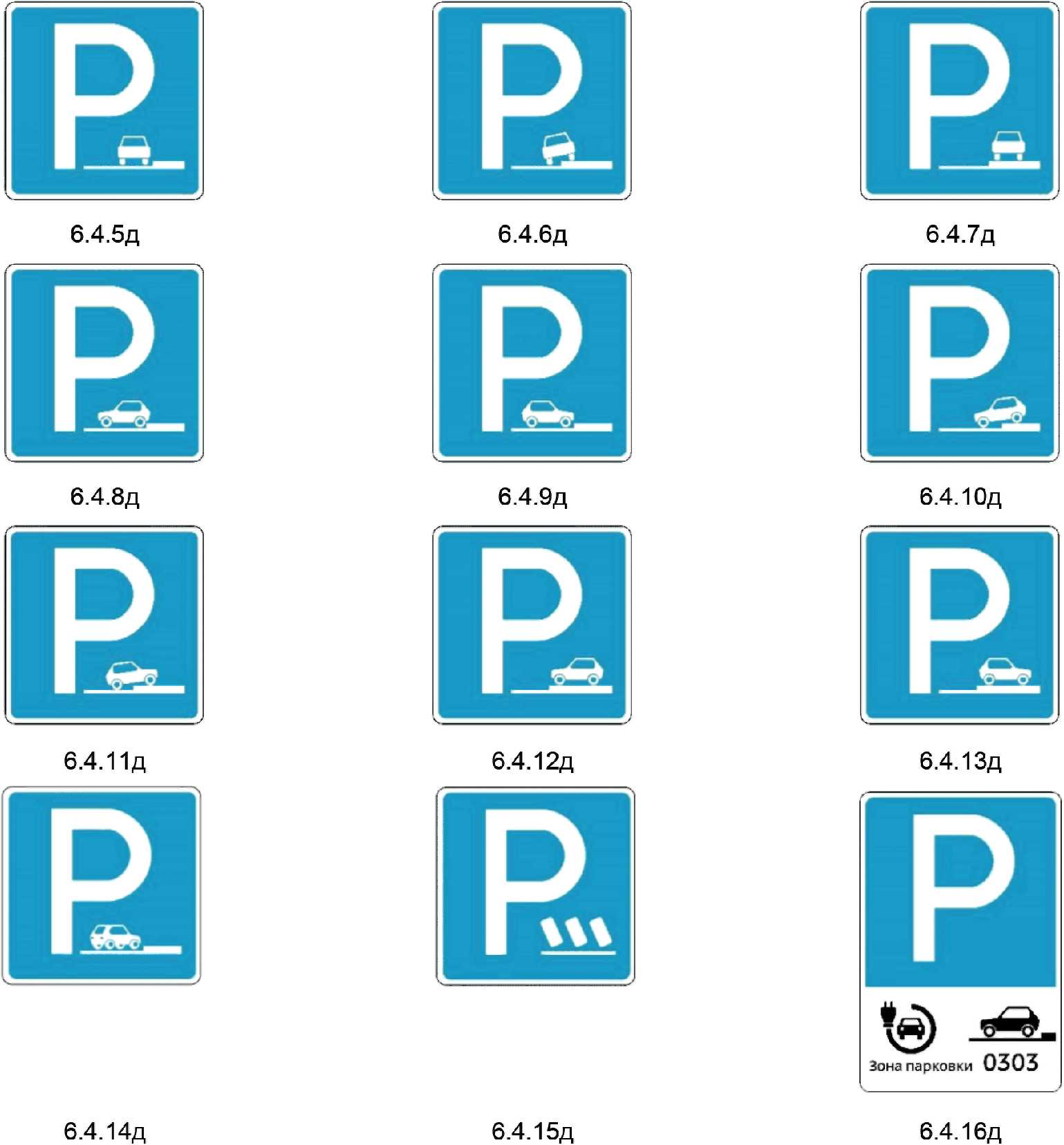 знака 6.4 элементов табличек и других знаков дополнительной информации допускается смещение буквы "P" для наилучшего визуального восприятия.
