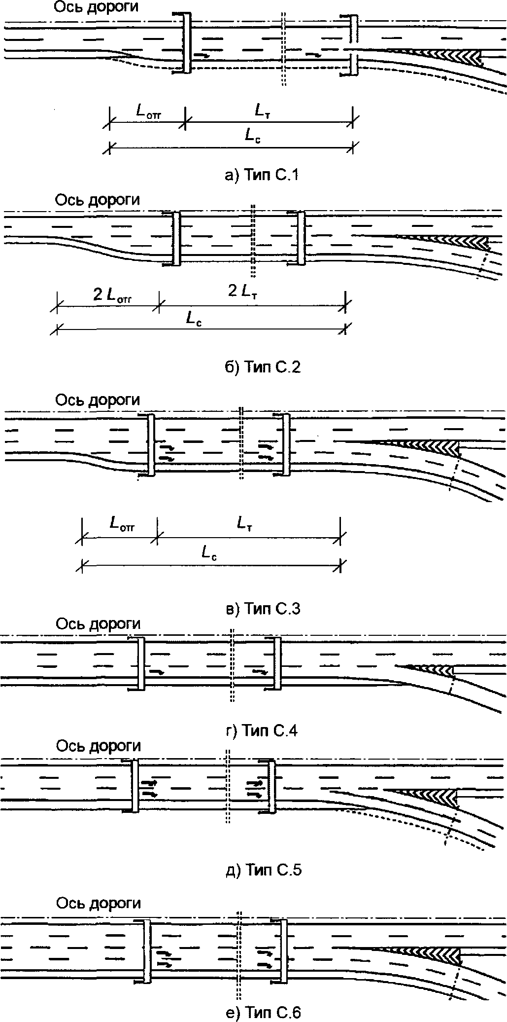 10.3.1 С целью обеспечения последовательного изменения режимов движения и приведения их в соответствие с изменяющимися дорожными условиями при проектировании транспортных развязок следует выполнять требования по взаимному расположению участков слияния и разделения транспортных потоков. Выполнение этих требований заключается в обеспечении минимальных расстояний между смежными участками слияния и разделения транспортных потоков.