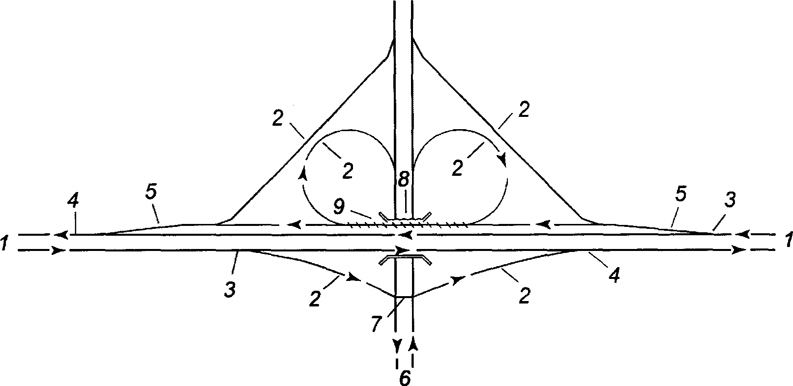 8 - путепровод; 9 - зона переплетения транспортных потоков