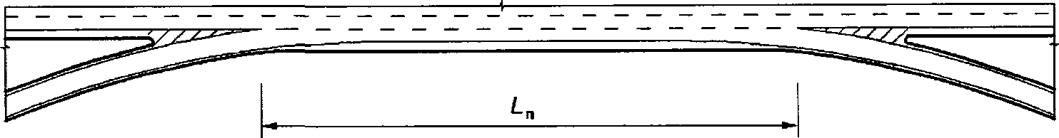 Примечание - В случае увеличения количества полос, обусловленного участком переплетения, это расстояние соответствует расстоянию между острыми концами разделительных полос, устраиваемых между съездом и основной проезжей частью.