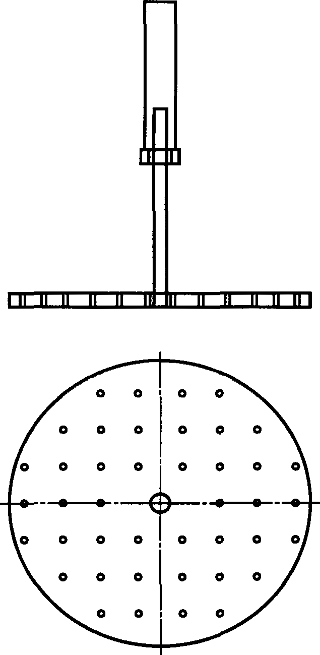 - перфорированная пластина диаметром, соответствующим внутреннему диаметру формы, с регулируемым по высоте стержнем. Перфорированная пластина должна свободно перемещаться внутри формы. Типовая конструкция перфорированной пластины представлена на рисунке 1;