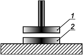 Испытательная система типа "плита - плита" (рисунок 1) состоит из плит в виде двух дисков одинакового диаметра из нержавеющей стали или алюминия высотой не менее 1,5 мм. Применяются плиты диаметром (25,00 +/- 0,05) мм, (8,00 +/- 0,02) мм и (4,00 +/- 0,01) мм.