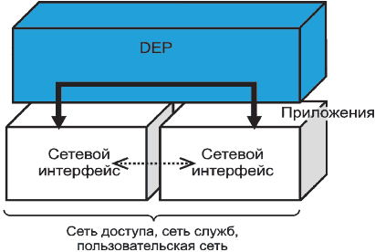 рисунке 16. Для развертывания служб в различных сценариях использования DEP должна абстрагироваться от конфигурации сети, протоколов и служб. Без использования DEP схема взаимодействия будет сложнее (см.