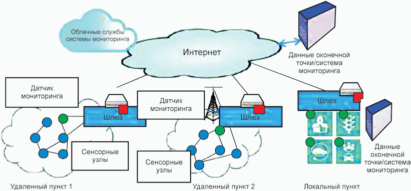 рисунке А.2 показана система ИВ для удаленного мониторинга критически важной инфраструктуры с помощью большого количества датчиков. Данные удаленного мониторинга используются во многих приложениях.