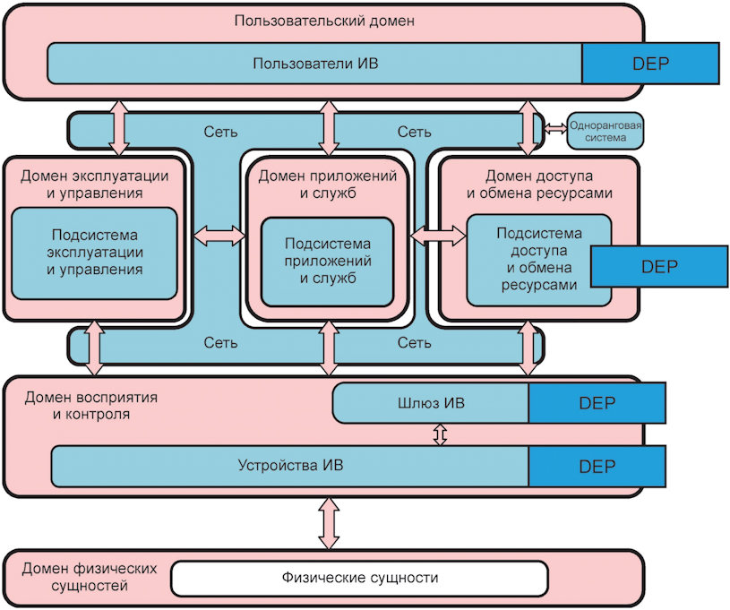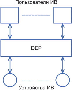 DEP распространяется на сущности ИВ и работает как платформа для объединения распределенных частей.