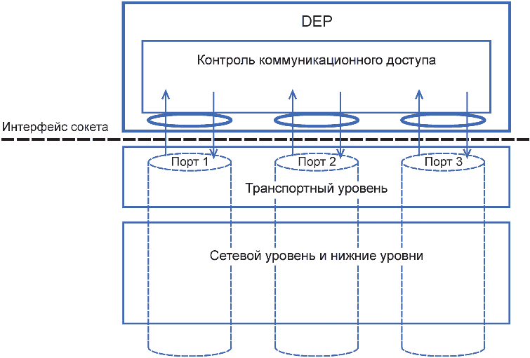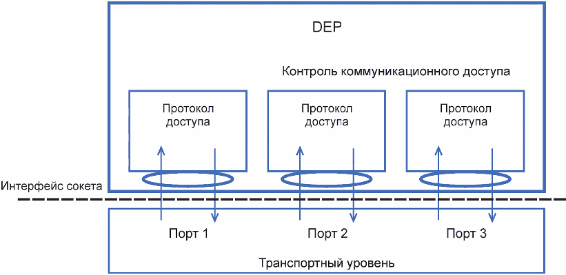 приложение Б), для интерфейсов между DEP и транспортным уровнем следует назначить несколько портов для идентификации каждого протокола доступа (см.