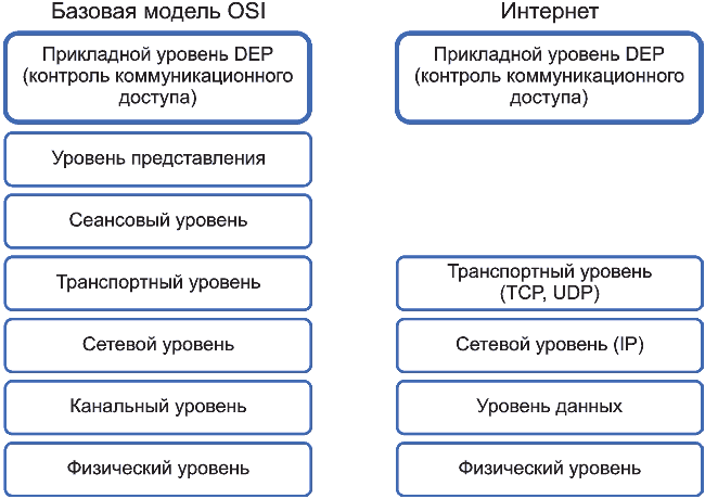 Требования к DEP определяются с точки зрения протокола связи. DEP должна позиционироваться как верхний уровень протоколов связи (например, протокол прикладного уровня, приведенного на