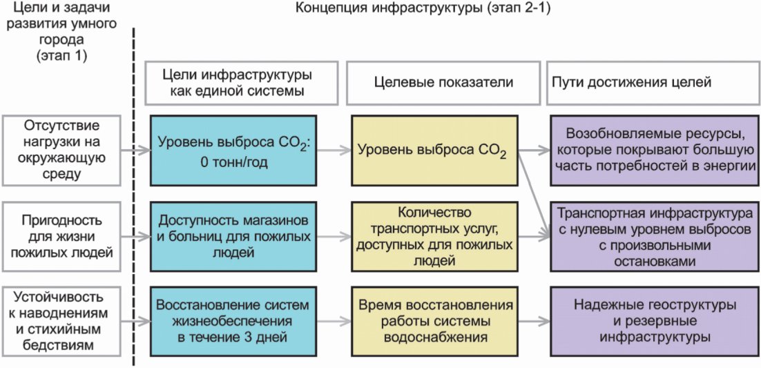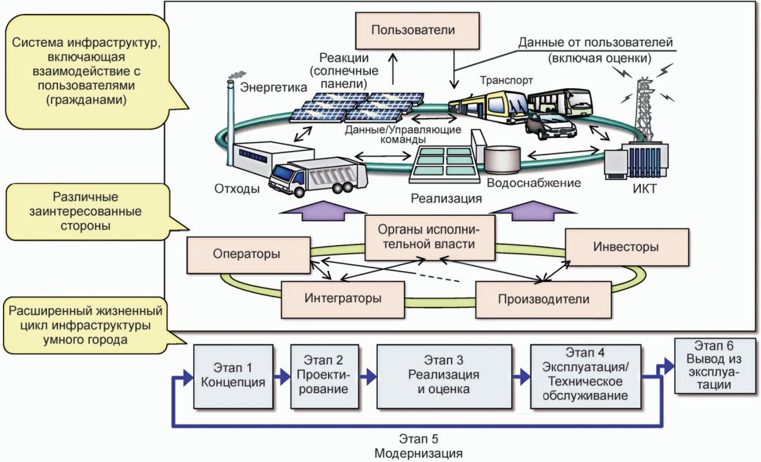 Концепция "умного города" является важным инструментом для решения существующих городских проблем путем интеграции различных инфраструктур города рациональным и эффективным образом. Помимо интеграции инфраструктур необходимо учитывать, что умный город включает различные заинтересованные стороны и что каждая инфраструктура умного города имеет расширенный жизненный цикл (см.