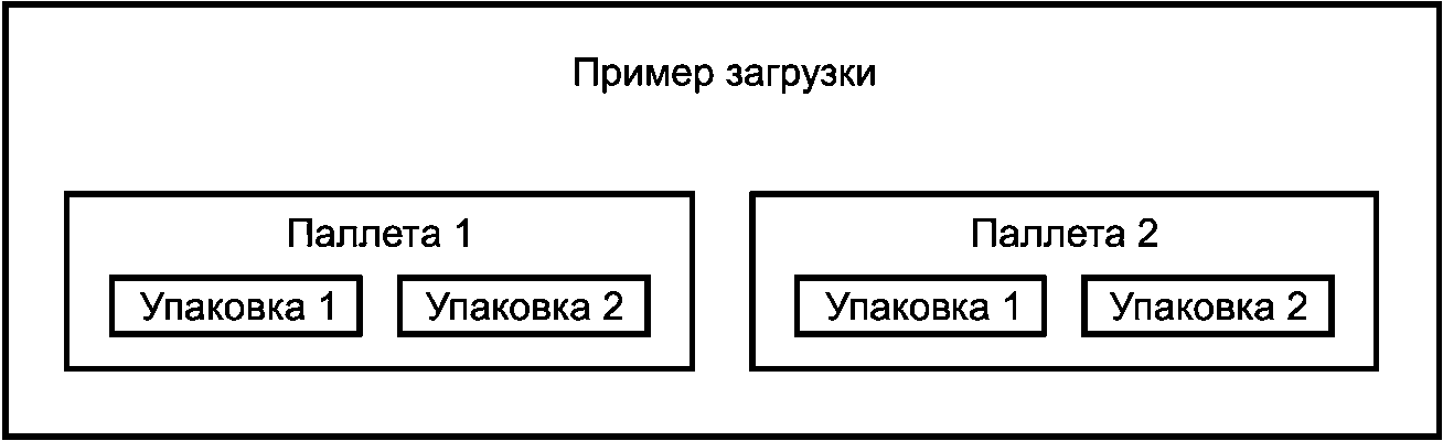 Груз может быть определен как любая комбинация транспортных грузов, упаковок (пакетов), поддонов и/или контейнеров. Каждый из них может быть вложен в любую комбинацию, как показано на