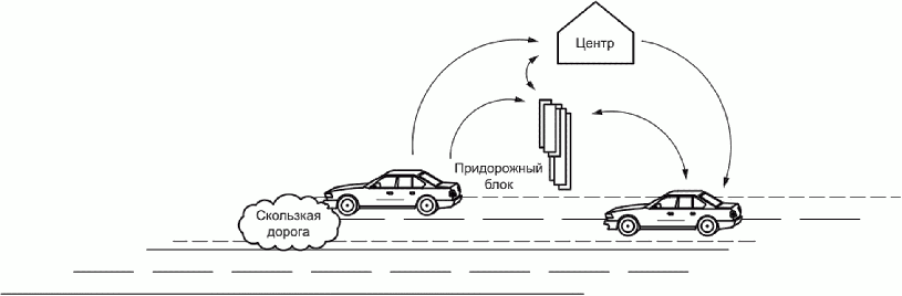 Сбор, оценку данных осуществляет система инфраструктуры, которые затем представлены в системе транспортного средства (см.