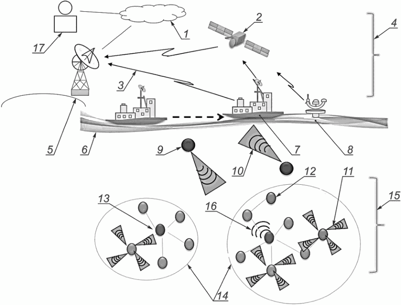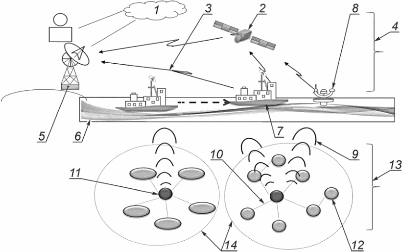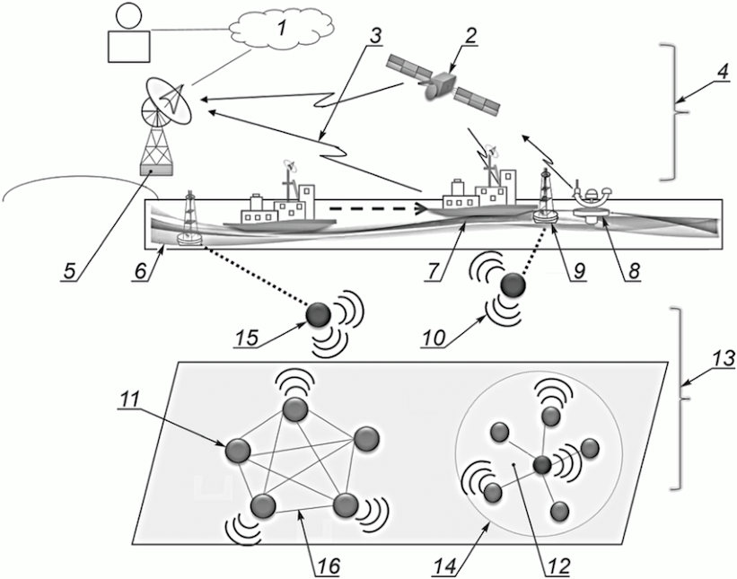 3.7) и передает данные в один или несколько ретрансляционных узлов или ближайший подводный акустический шлюз (см.