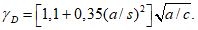 HD = 1 - 0,34a/S - 0,11·(a/c)·(a/S);