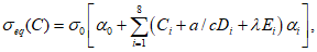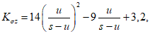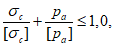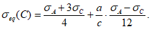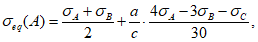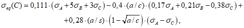 Приведенное напряжение при a/c <= 1 для линейного распределения напряжений по толщине стенки определяется по формуле