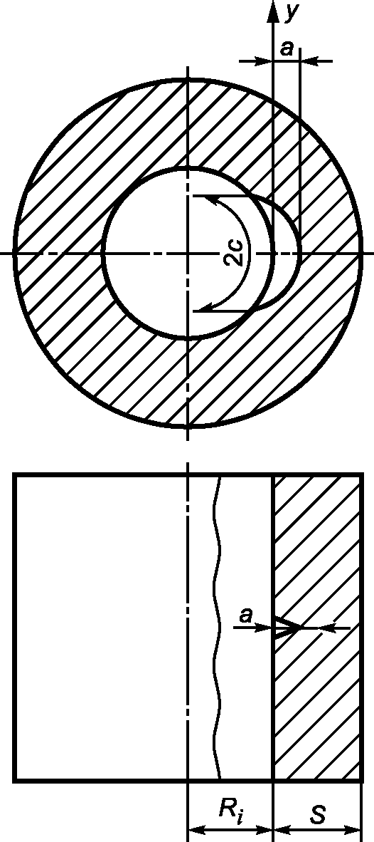 Уточнение КИН проводят для дефектов, расположенных на внутренних поверхностях при замкнутом характере этих поверхностей (например, уточнение не приводят для толстостенного цилиндра, разрезанного вдоль образующей или для бруса большой кривизны).