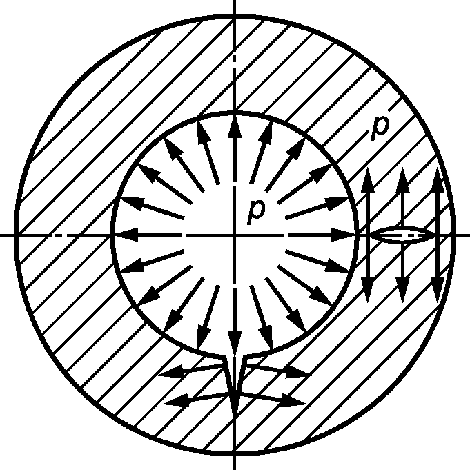 - приведенное напряжение с учетом проникающего в полость трещины давления, МПа;
