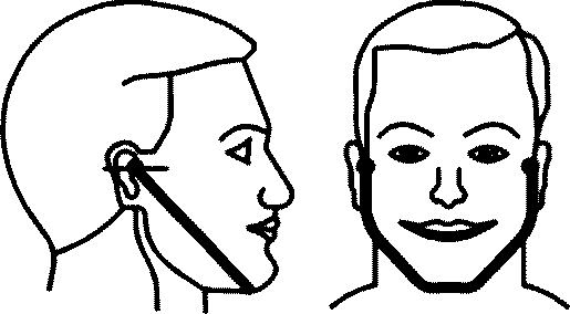 Бигониал (измеряют между точками изменения угла нижней челюсти) | 132,5 - 144,5 | |