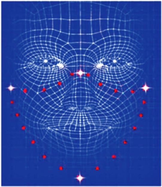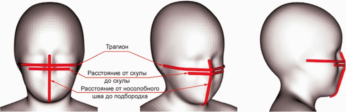 Замеры проводят по лицевым точкам в соответствии с изображением на