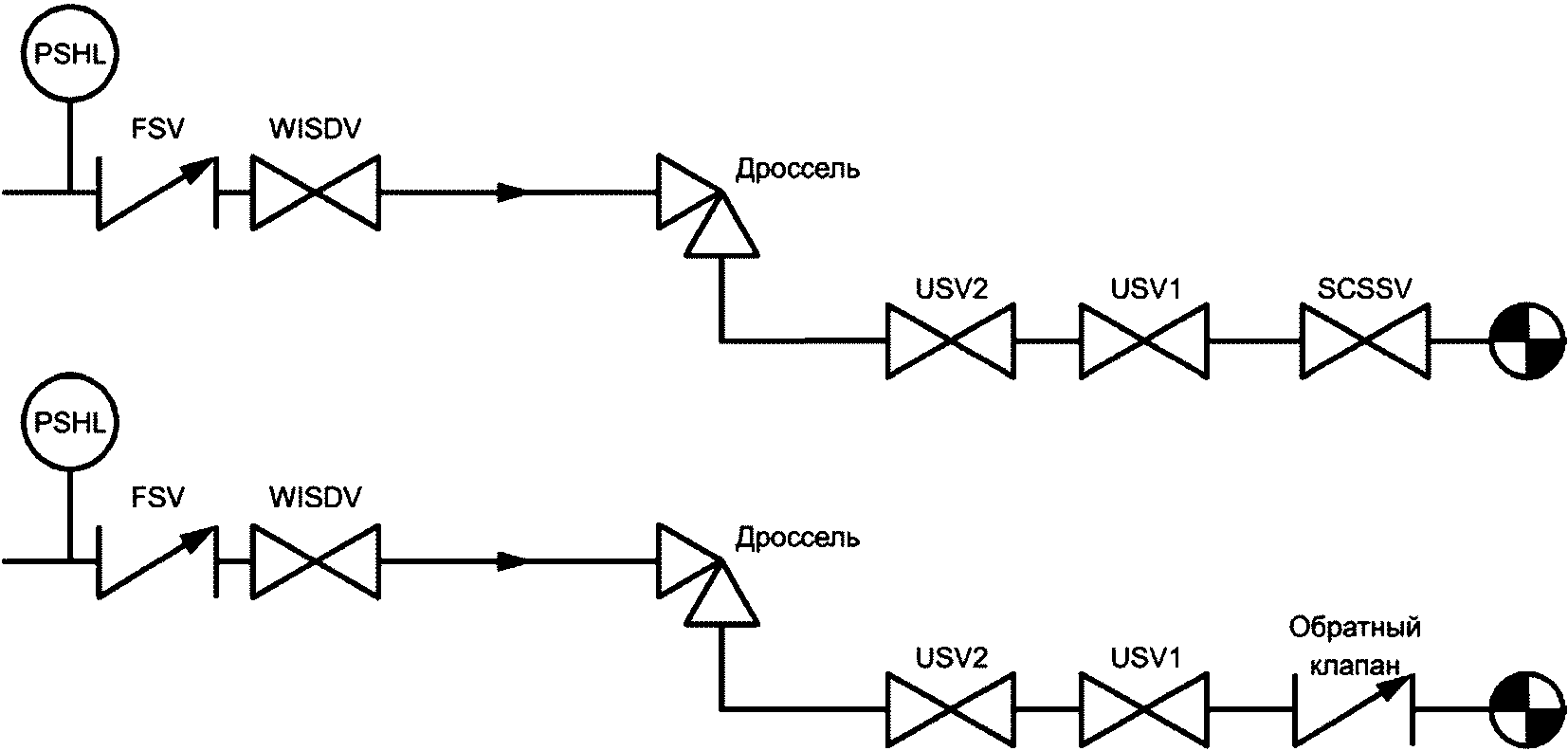 на линии нагнетания газа; WISDV - Отсечная арматура на линии