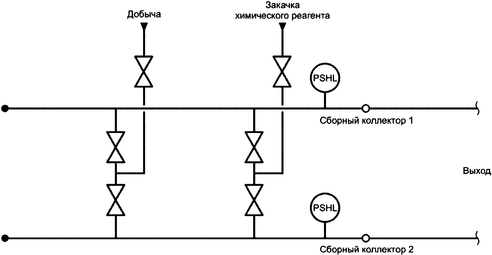 Примечание - Во время проверки работоспособности система аварийного останова ESD перекрывает, как минимум, одну скважину. Если на одну и ту же надводную систему подходит несколько скважин, то при каждом ежеквартальном испытании следует перекрывать разные скважины.
