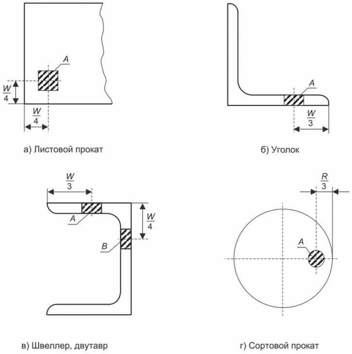 9.3 Для экструдированных изделий образцы для испытаний отбирают в диапазоне от 1/3 до 1/2 от расстояния от края до центра самой толстой части сечения. Следует применять продольные образцы.