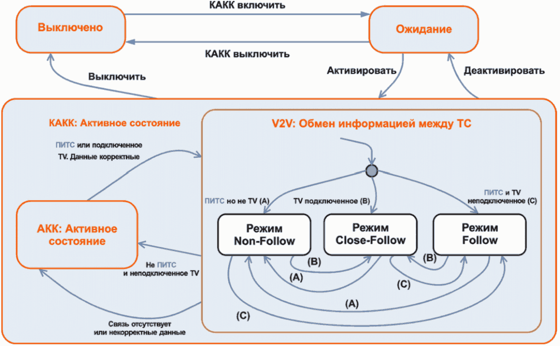 6.1.5.4), система КАКК V2V сообщает о своем рабочем состоянии, как о режиме Close-Follow.
