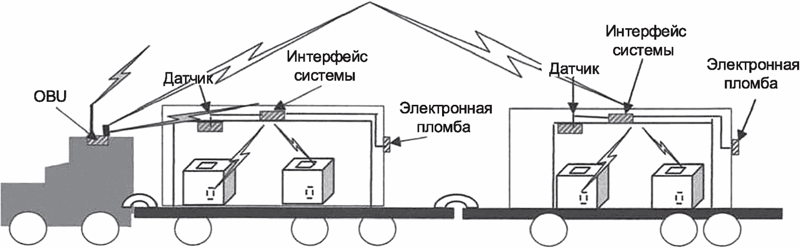 в) архитектуру для сбора и передачи агрегированных данных из информации о транспортируемом грузе, в транспортной системе с целью обеспечения эффективной обработки идентификационных данных грузовых автомобилей (включая прицепы грузовых автомобилей) и бортовой информации о грузе для целей отслеживания и мониторинга грузов наземного транспорта.