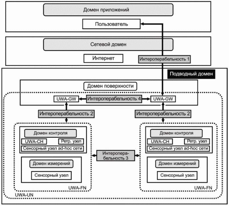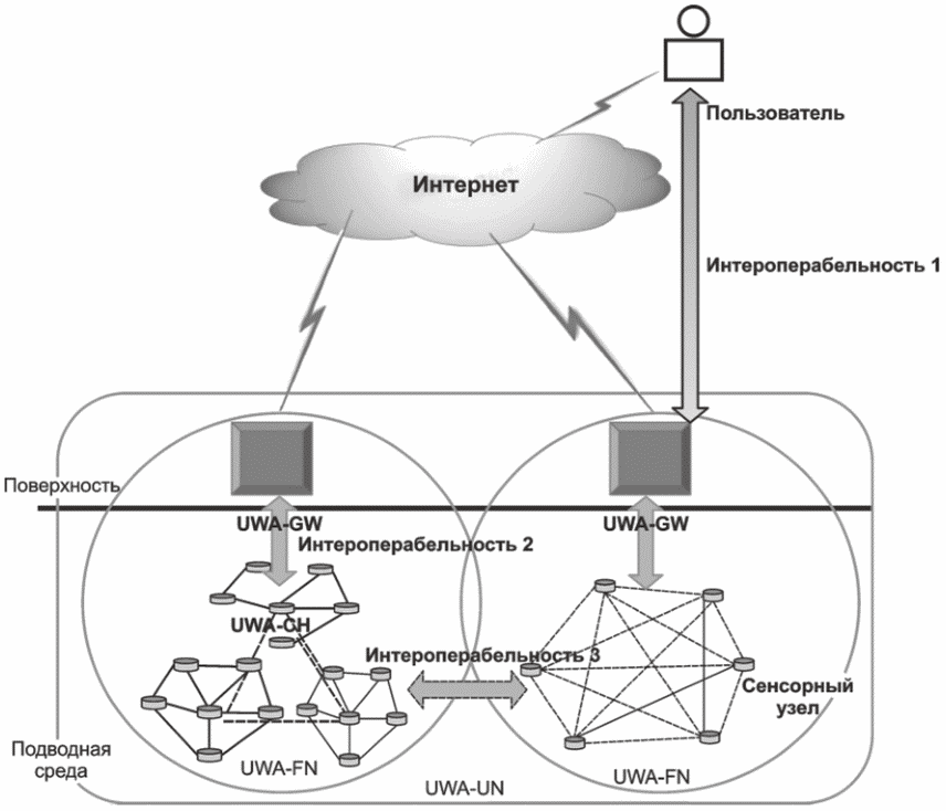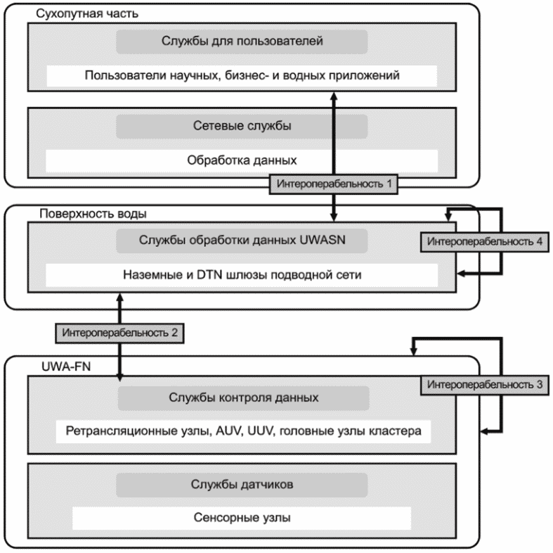 Интероперабельность UWASN включает следующие аспекты: