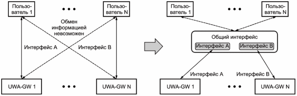 Получили распространение методы обеспечения интероперабельности между пользователем и шлюзом с использованием общего интерфейса, определенного в