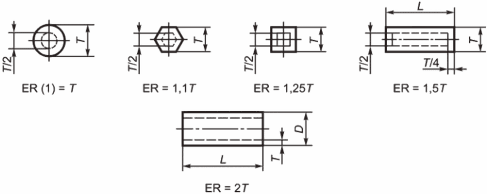 Номинальные размеры отверстий для бурового оборудования по API имеют допуск 0,031 дюйма. В соответствии с теми же правилами, что и для номинальных значений давления, преобразованные размеры должны быть округлены в большую сторону до ближайших 0,05 мм. Номинальные размеры проходного отверстия для оборудования по данному стандарту находят в соответствии с