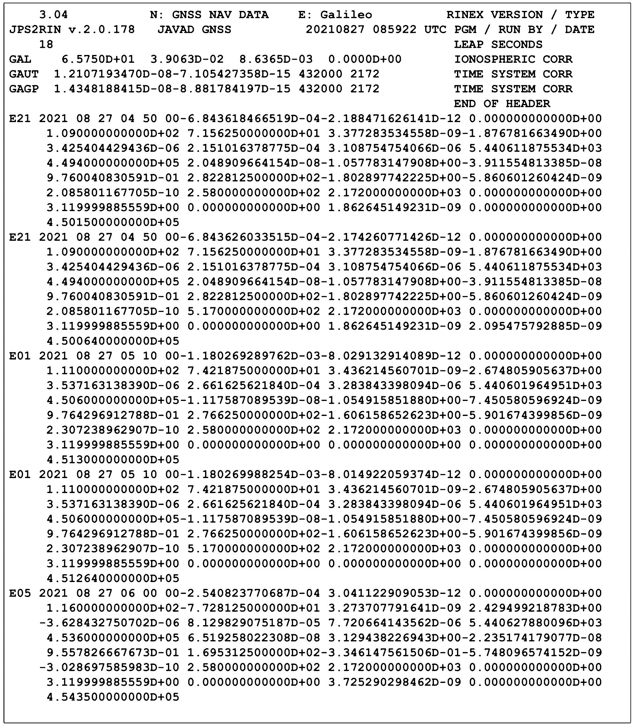 ПРИМЕР ФОРМАТА RINEX ДЛЯ ОБУЧЕНИЯ АЛГОРИТМОВ