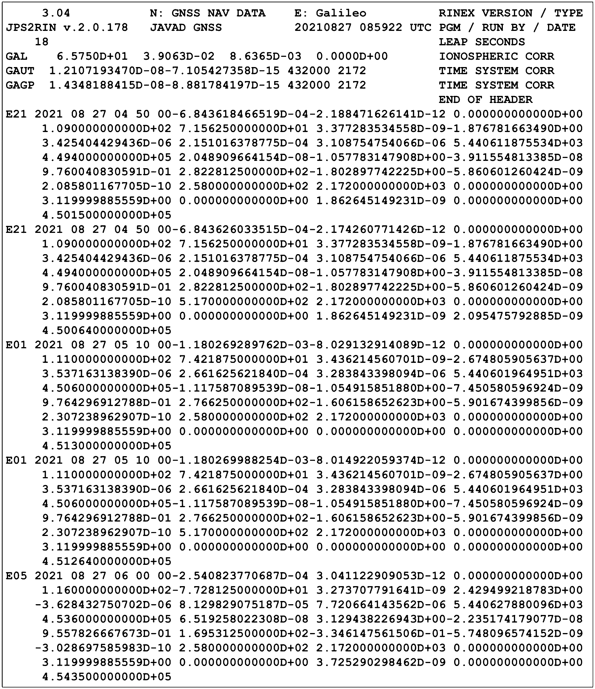 ПРИМЕР ДАННЫХ В ФОРМАТЕ RINEX ДЛЯ ОБУЧЕНИЯ АЛГОРИТМА