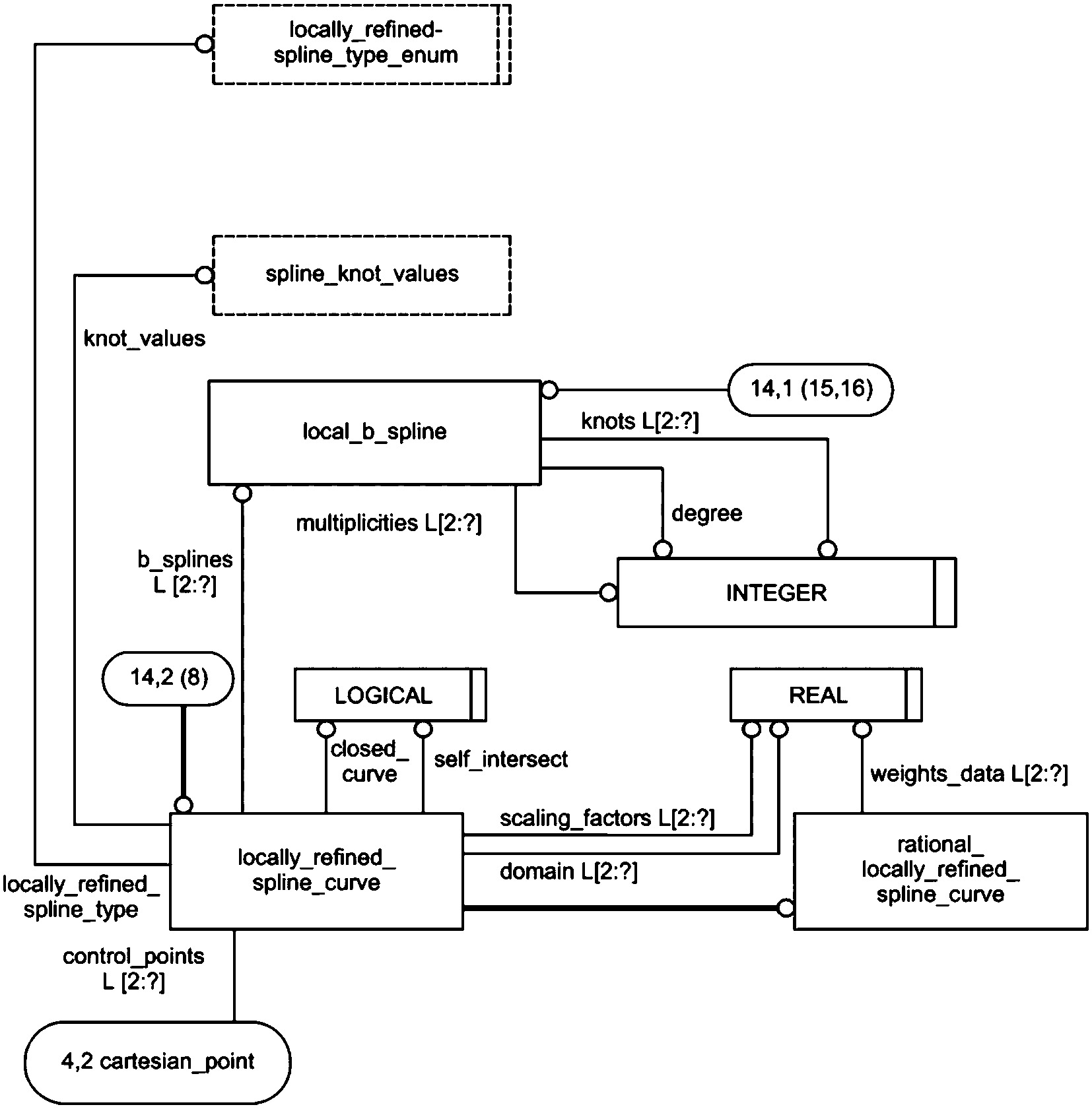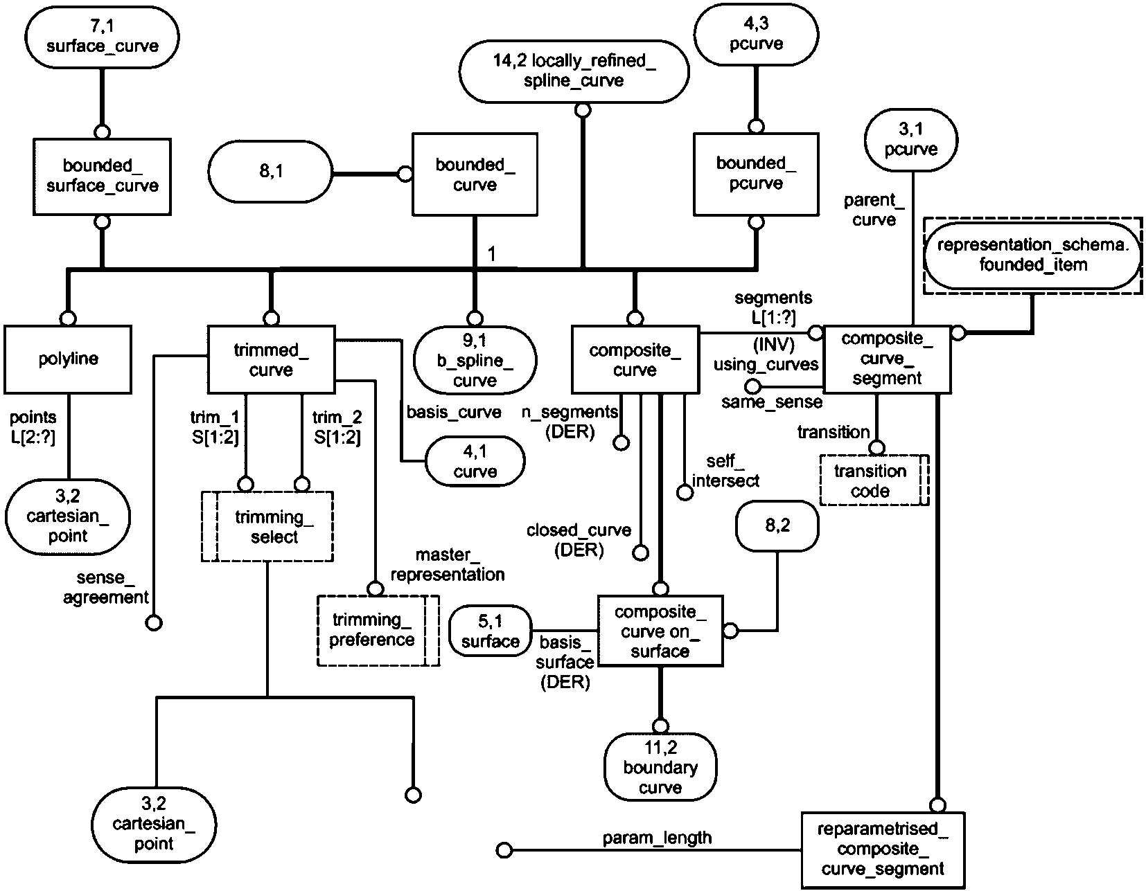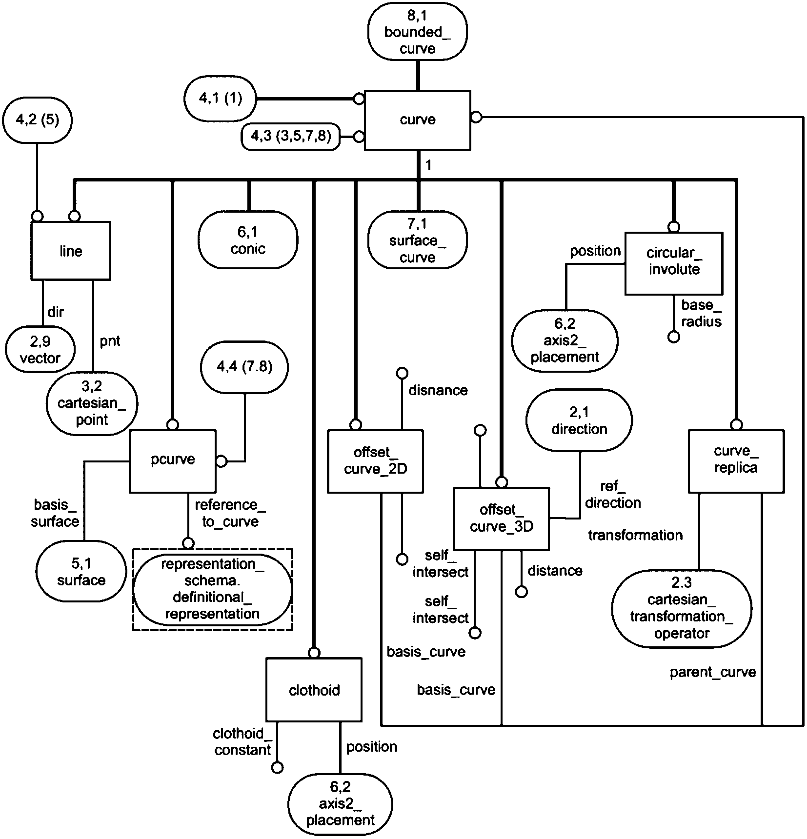 разделе 4 включает в себя только геометрию параметрических кривых и поверхностей, а именно объекты кривой и поверхности и другие объекты, функции и типы данных, необходимые для их определения. Для определения двумерной и трехмерной геометрии использована общая схема. Геометрия определяется в системе координат, устанавливаемой как часть контекста представляемого элемента. Использование структур представления определено в