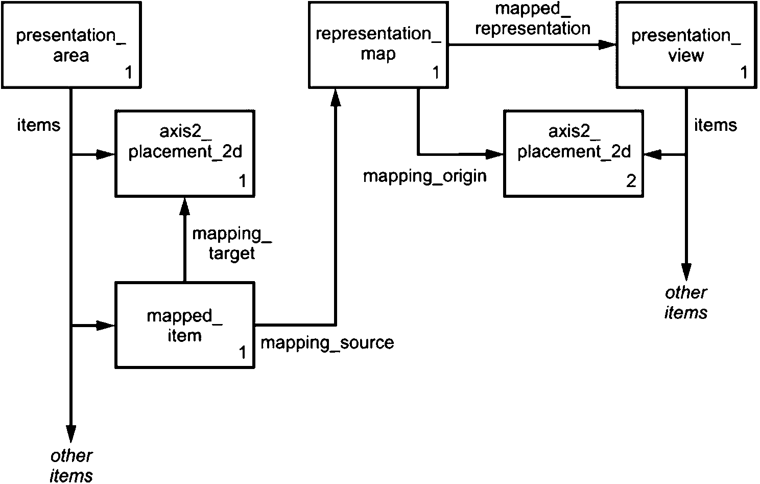 - связи между данными об изделии, определенными в других стандартах серии ГОСТ Р ИСО 10303, и данными о представлении;