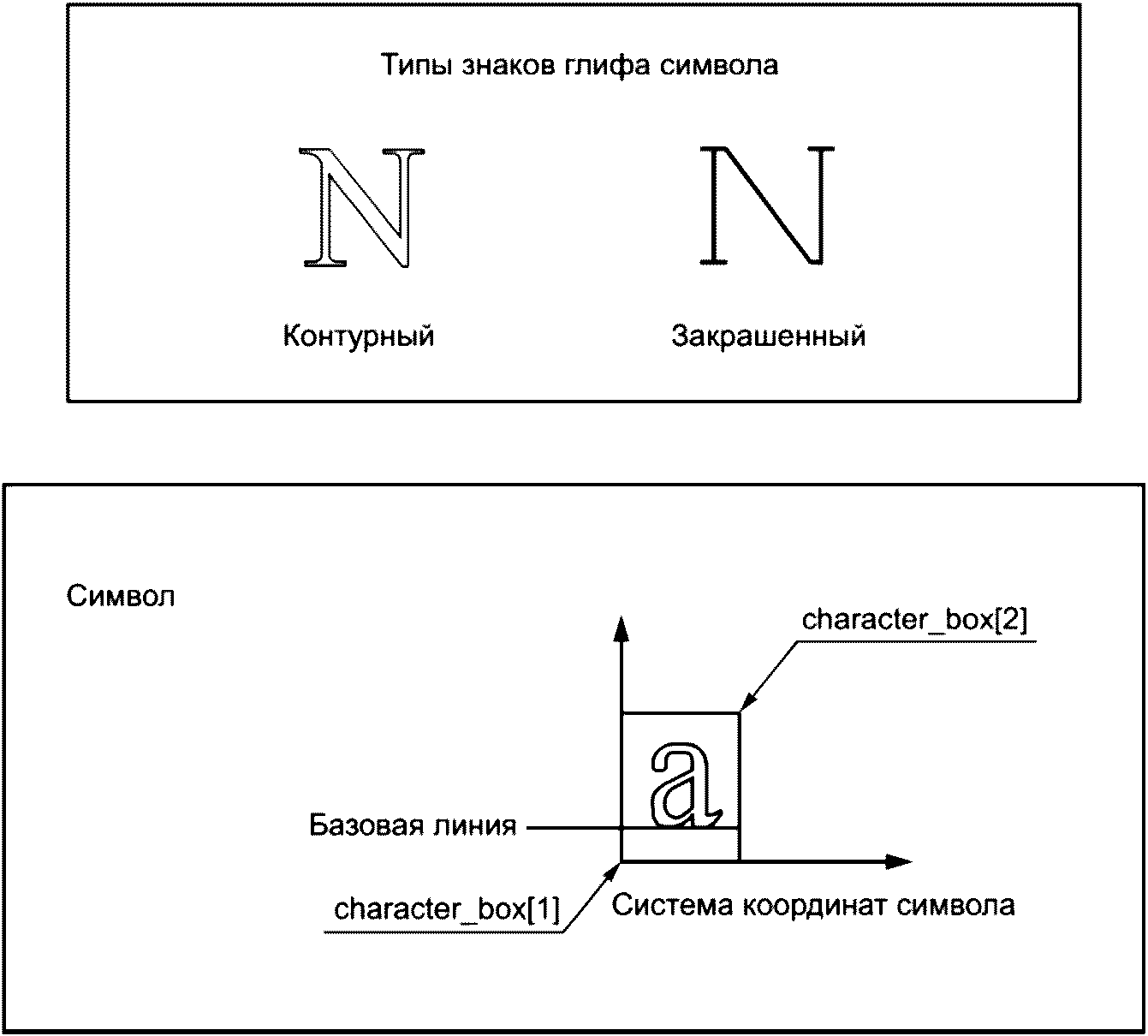- методы определения внешнего вида знаков и символов в шрифтах;