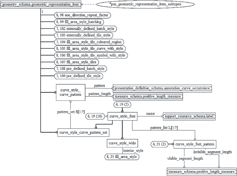 Схема описания представления (presentation_definition_schema) служит для определения, как отдельные геометрические и негеометрические компоненты информации об изделии должны быть выбраны, скомпонованы в группы представлений и связаны со стилями представлений.