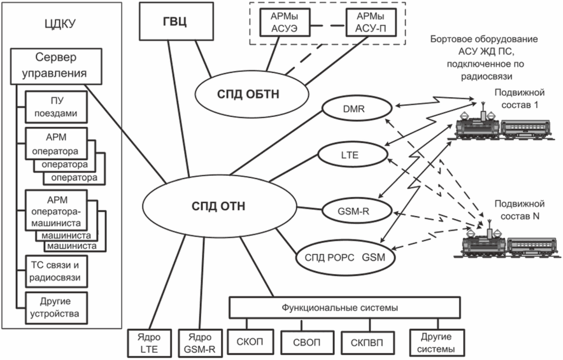АСУ ЖД ПС - системы управления железнодорожным подвижным составом в автоматическом и дистанционном режимах;