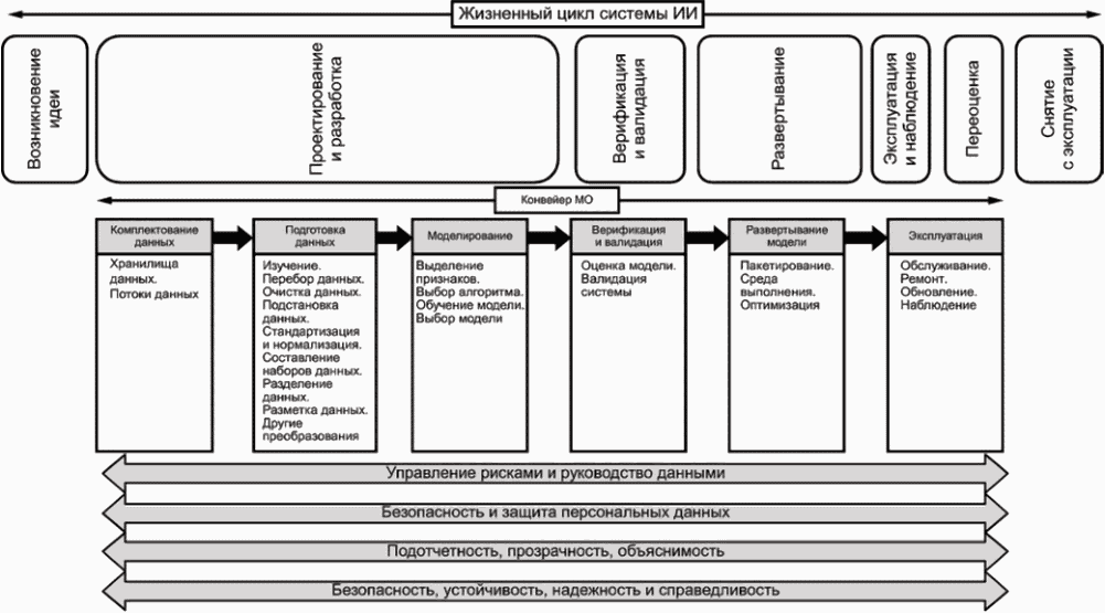 рисунке 13 представлены различные субкомпоненты системы МО и показано, как эти процессы могут сочетаться друг с другом. Следует отметить, что не все процессы, описанные в конвейере МО, изображены на