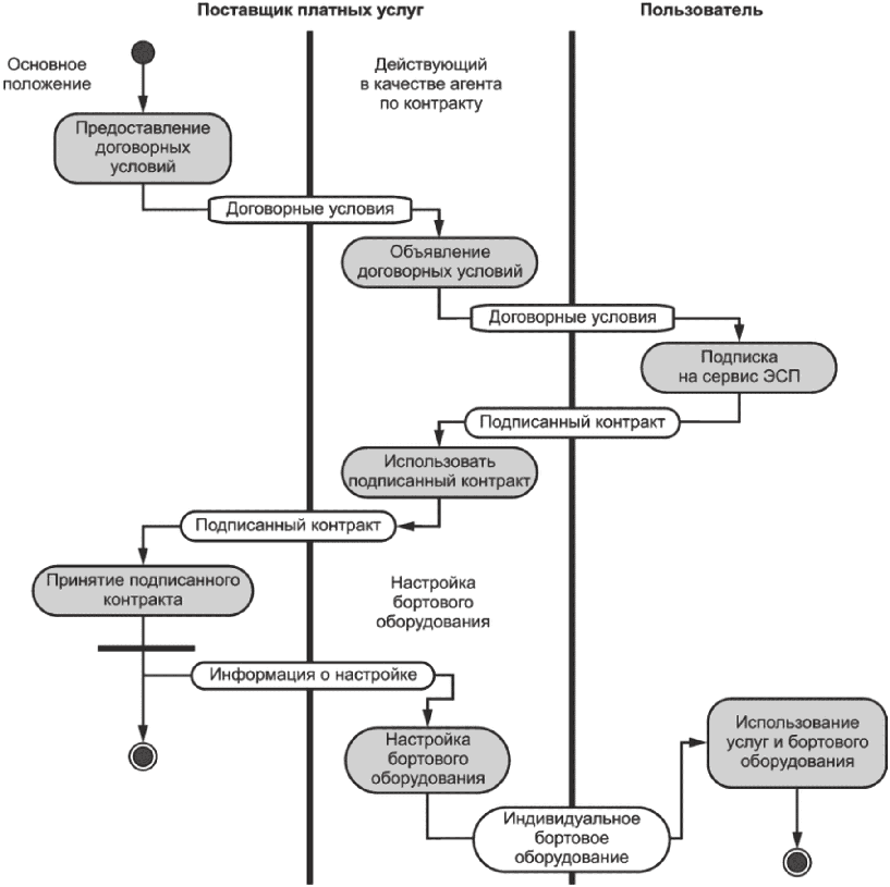 - поставщик платных услуг должен действовать как поставщик услуг для идентификации пользователя, идентификации тарифа начисления платы и обмена информацией об использовании платной зоны, а также как получатель информации для обмена информацией о начислении платы.