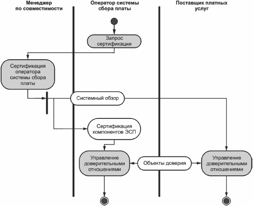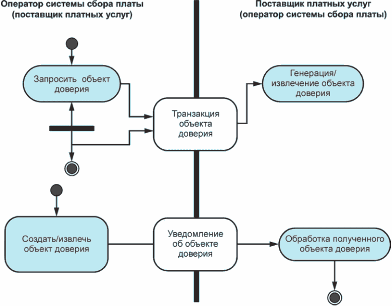 2 Взаимодействие с уведомлением об объекте доверия, которое позволяет либо оператору системы сбора платы, либо поставщику платных услуг доставить объект доверия своему партнеру.
