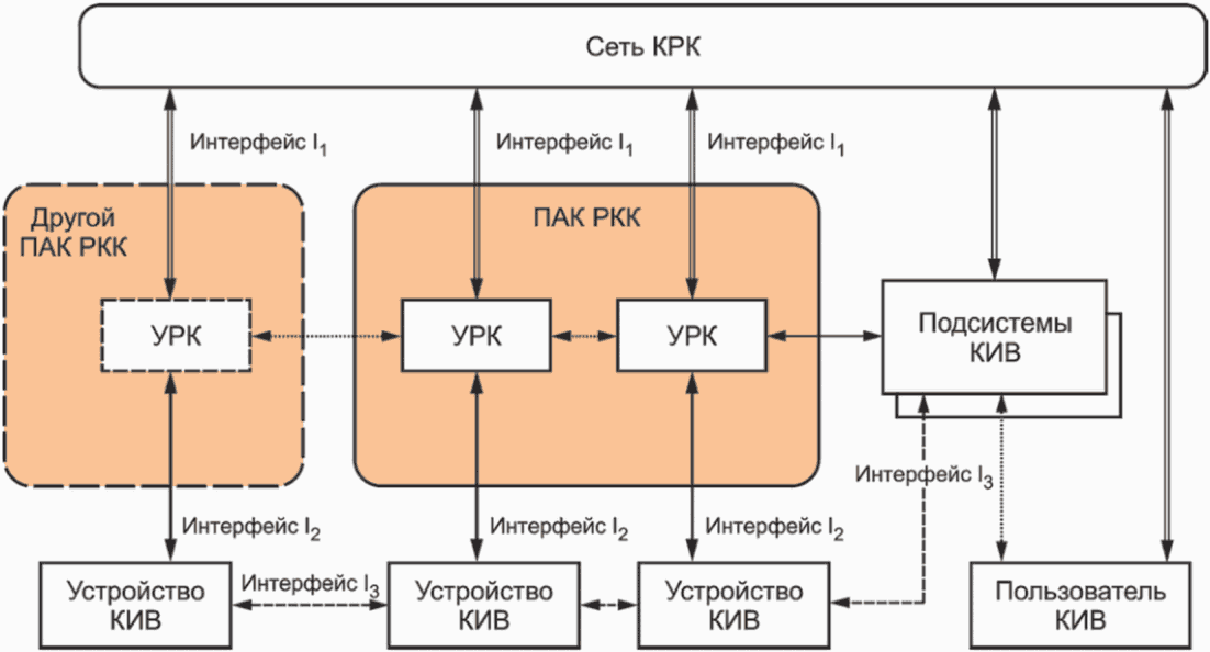 Взаимодействие между УРК осуществляется по интерфейсу УРК-УРК (вопросы стандартизации данного интерфейса выходят за рамки настоящего стандарта).