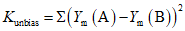 ymA, ymB - значения модели, полученной на A (обучающей) и B (проверочной) частях выборки соответственно.