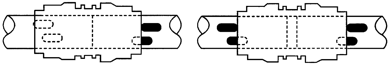 рисунке 5. Данный принцип установки применим только при возможности осевого сдвига совмещаемых труб на длину не менее половины фитинга во время ремонта.