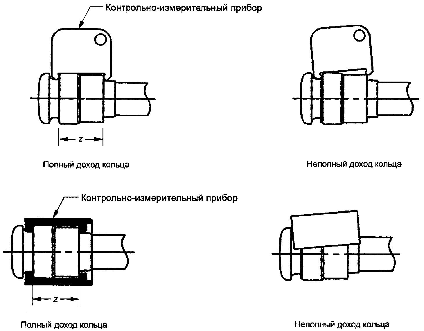 5.1 После установки фитинга доход кольца должен быть проверен при помощи контрольной скобы минимум в трех местах по окружности запрессованного фитинга или при помощи контрольного калибра, как показано на