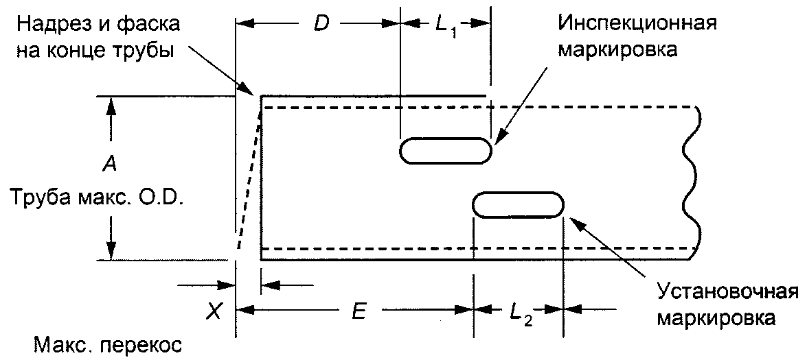 Труба должна быть промаркирована у торца соответствующими рисками для контроля минимальной глубины посадки в соответствии с рисунком 4.